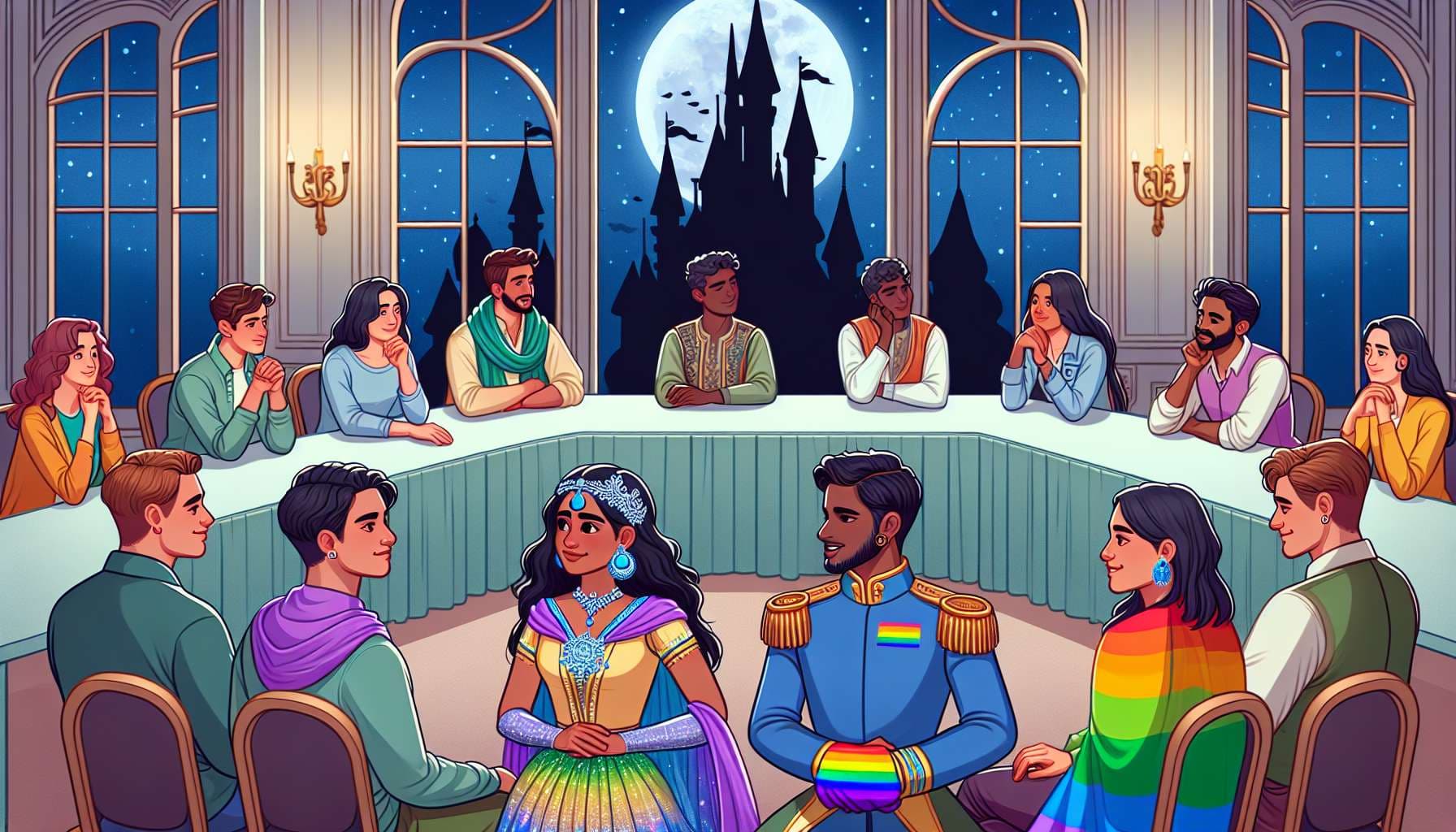 • "and they were room-mates" style hinting (including e.g. Princesses holding hands in a crowd scene)